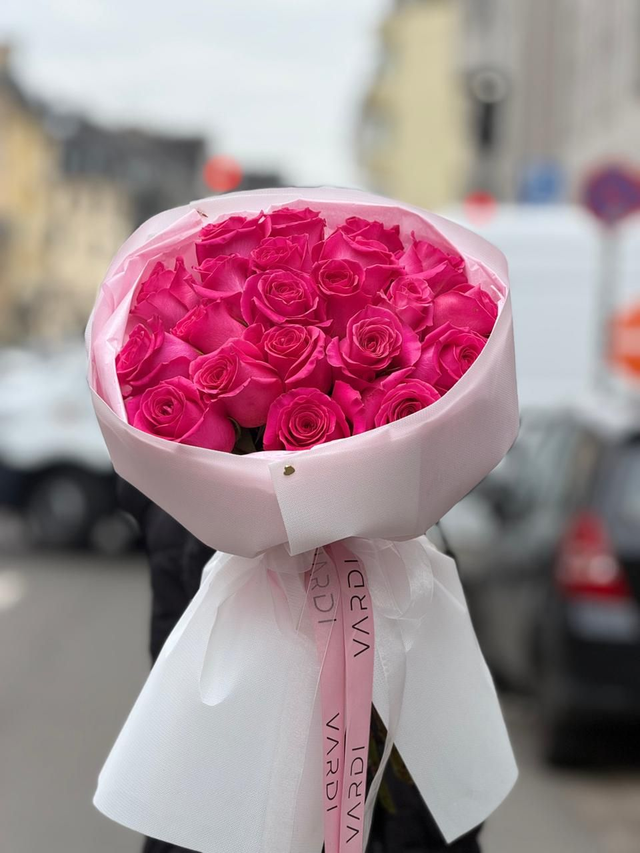 Pink Floyd 18 ist ein klares Statement aus 18 exklusiven Ecuador-Rosen der Sorte „Pink Floyd“. Die intensiven Rosétöne wirken kraftvoll und zugleich elegant. Reduziert inszeniert mit weißer Tissui-Einlage, weiß matter Verpackung und veredelt durch Seidenband mit rosa VARDI-Band. Ein klassisches Rosenbouquet mit moderner, luxuriöser Ausstrahlung – pur, selbstbewusst und zeitlos.