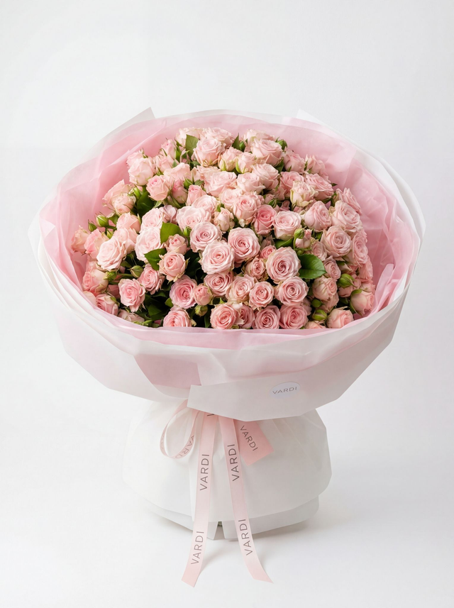 "Rose Ballet" wirkt wie ein stiller Tanz aus Rosé. Dreißig zarte Gartenrosen der Sorte Aerobic öffnen sich in weichen Wellen und bilden ein rundes, harmonisches Meer aus Blüten. Jede Rose scheint sich sanft an die nächste zu lehnen – wie ein leises Versprechen von Nähe, Wärme und Geborgenheit. Die luftige, helle Verpackung unterstreicht die Feinheit des Bouquets und lässt die Rosen fast schwerelos erscheinen. Ein Arrangement voller Romantik – weich, feminin und poetisch. Ein Geschenk für Herzensmomente, die bleiben.